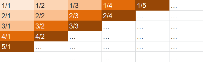 무한히 큰 배열에 다음과 같이 분수들이 적혀있다.